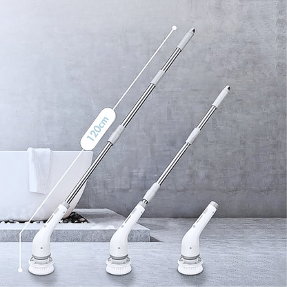 The 360° rotating brush and ergonomic extension handle allow easy access to corners, tiles, sinks, and more.